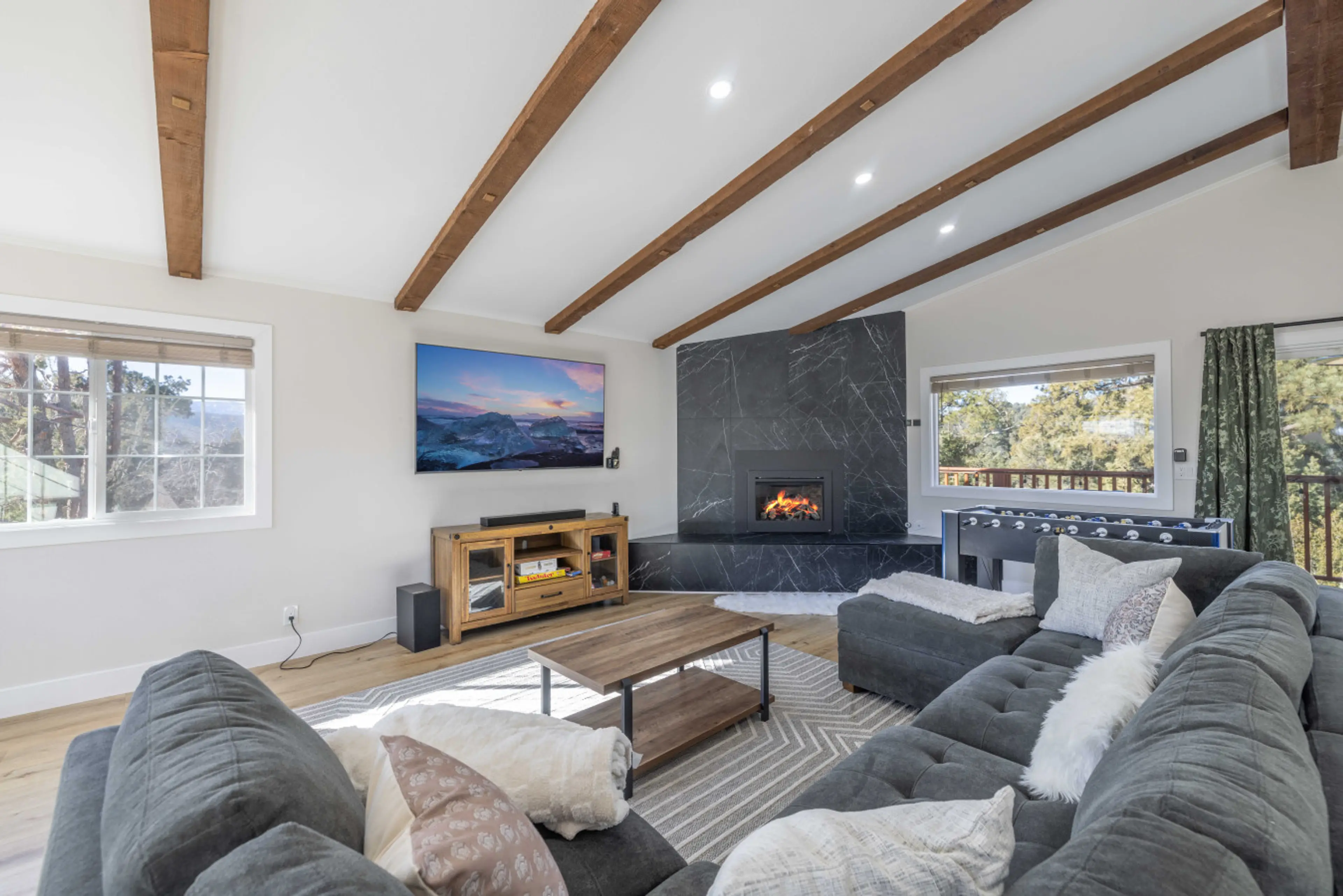 This elegant 4-bedroom, 2.5-bath residence is located in Big Bear City. It offers stunning mountain views from the expansive deck, a private jacuzzi for relaxation, and a frisbee golf course situated on the spacious 9,800 sq. ft. yard. The property features a comfortable living room with a fireplace...